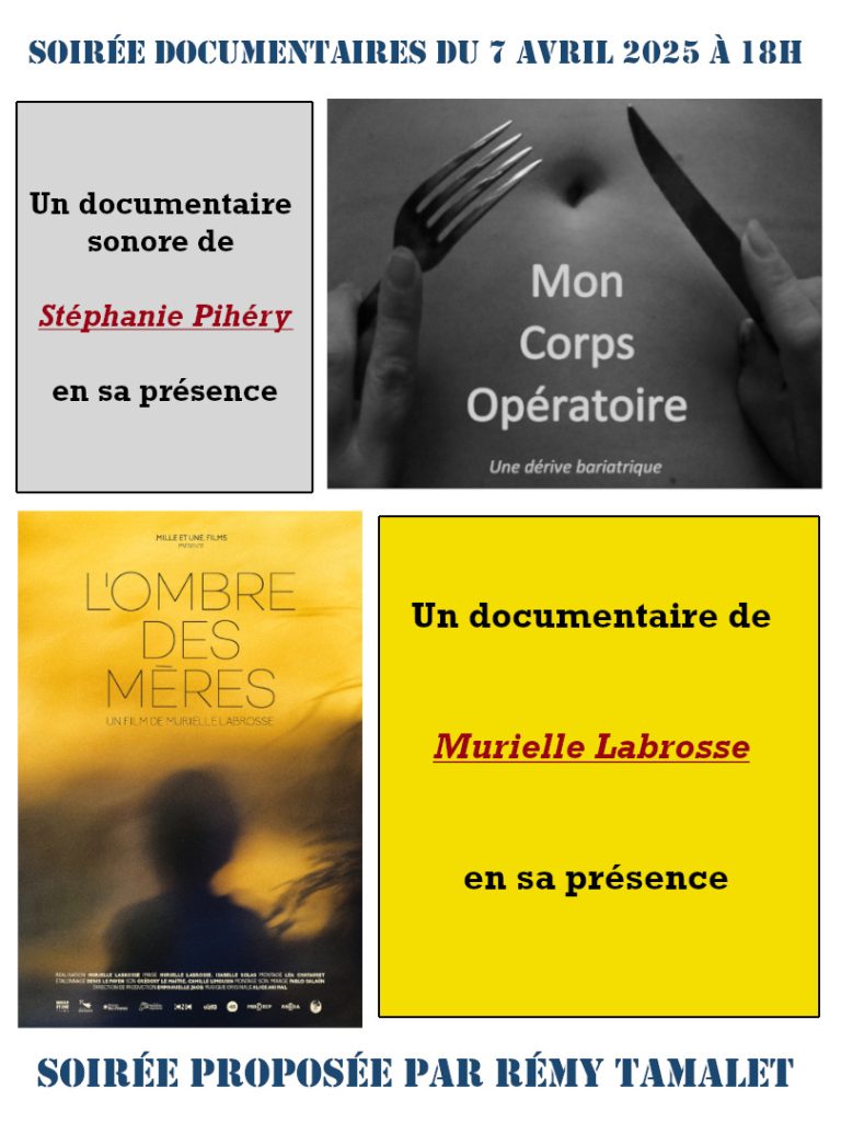 Semaine du 2 au 8 avril 2025 JOURS HORAIRE Mercredi Jeudi Vendredi Samedi Dimanche Lundi 18h & 20h Mardi Dans le cadre du Marathon Du Doc organisé par la médiathèque de Royère de Vassivière et l’association Médiathèque et Compagnie, en partenariat avec la B.D.C. et le Conseil départemental de Creuse Pour ceux qui sont intéressés, un repas sera partagé entre les deux documentaires, n’oubliez pas d’apporter un petit quelque chose!
